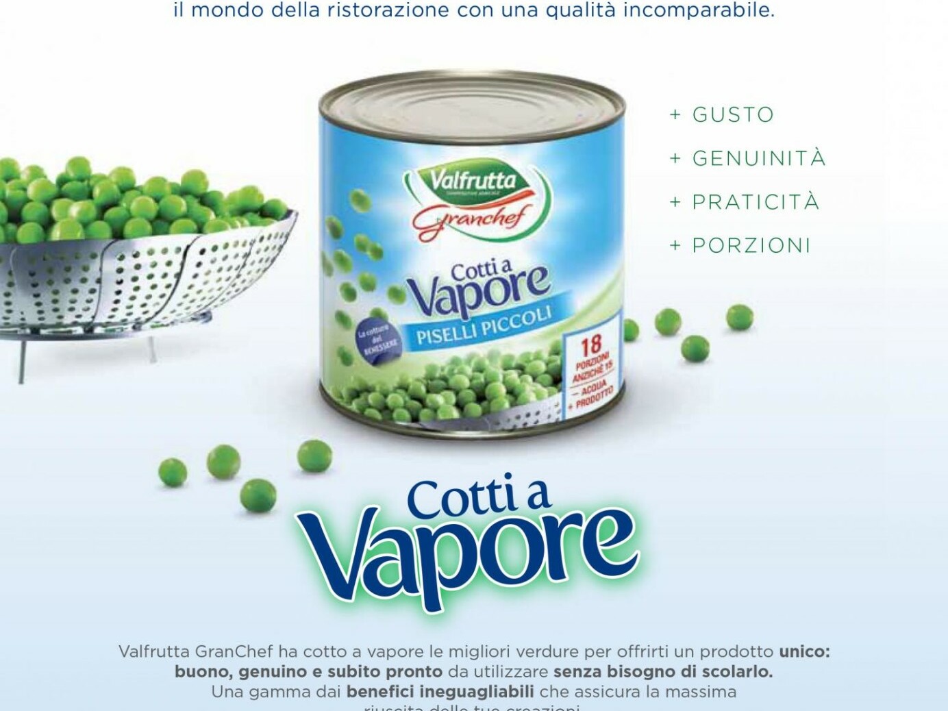 Campagne stampa trade per il lancio della linea "Cotti a Vapore" di Valfrutta Granchef. Attività:…