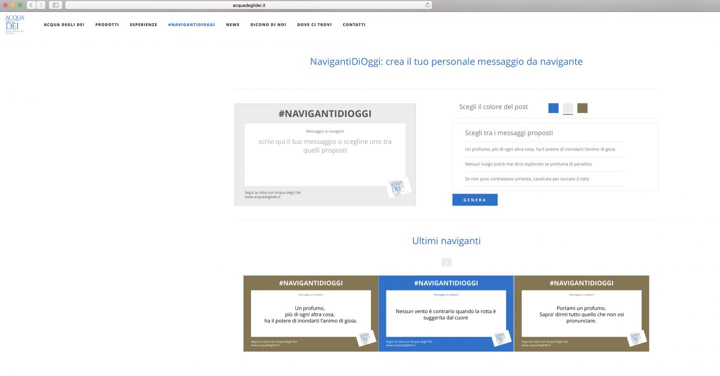 – storytelling e creatività strumenti di comunicazione: packaging, brochure, meccanismi di engagement (#NavigantiDiOggi), web writing, sceneggiatura e regia video.