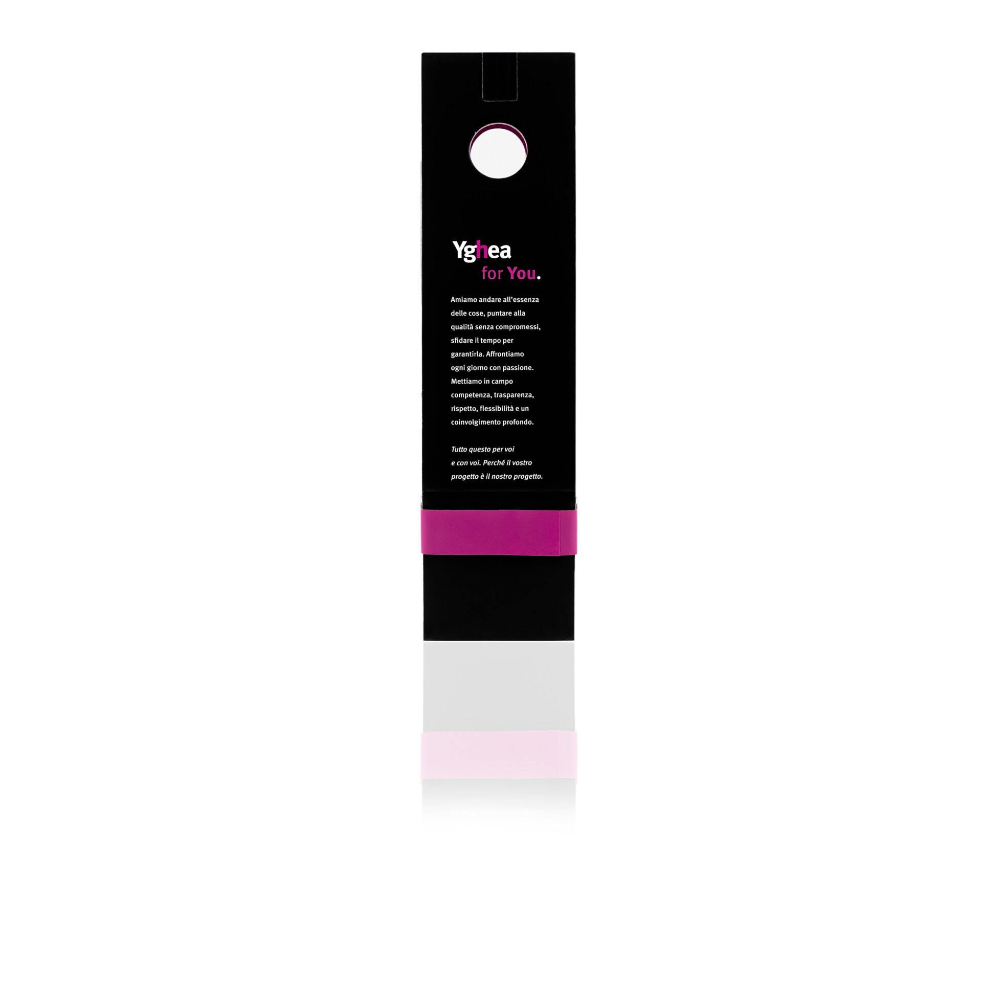 Il messaggio di You vive nel tempo: dalle scrivanie dei destinatari o dall’angolo di un ufficio, il suo profumo e il logo impresso sul flacone continuano a diffondere i valori del marchio Yghea.
