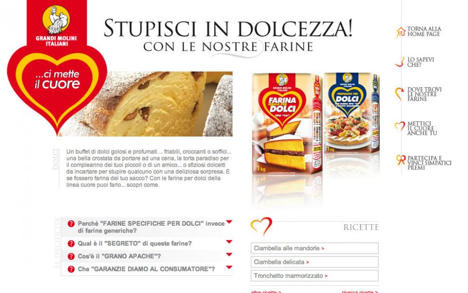 Strumenti below the line e sito web de “Le farine del Cuore” del brand GMI-Grandi Molini Italiani. Attività svolte per il lancio della nuova linea di farine: web editing, ideazione del concept e realizzazione dei contenuti della brochure di gamma.