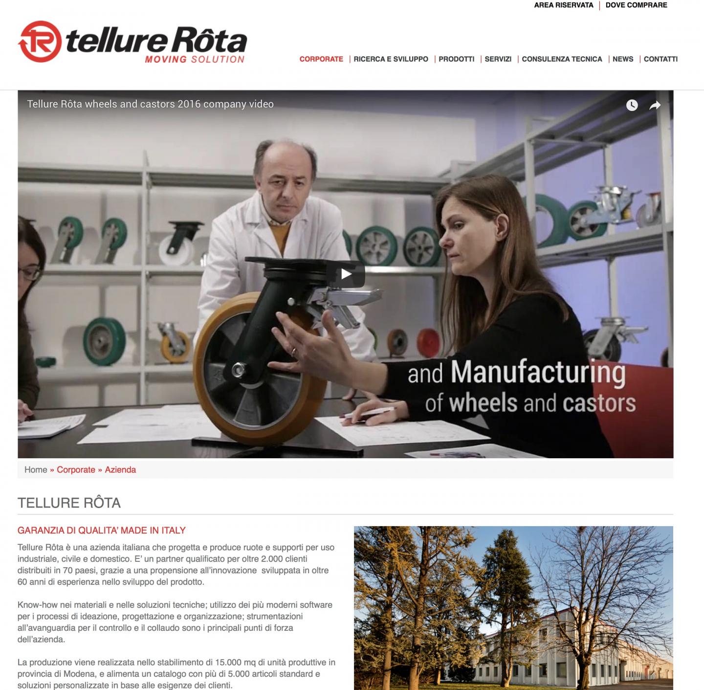 Web editing e video aziendale per Tellure Rota, azienda leader nella progettazione, produzione e vendita di ruote e supporti per il settore civile e industriale (2000 clienti in 70 Stati del mondo): www.tellurerota.com.